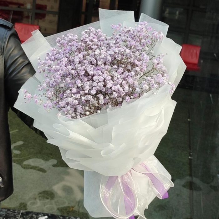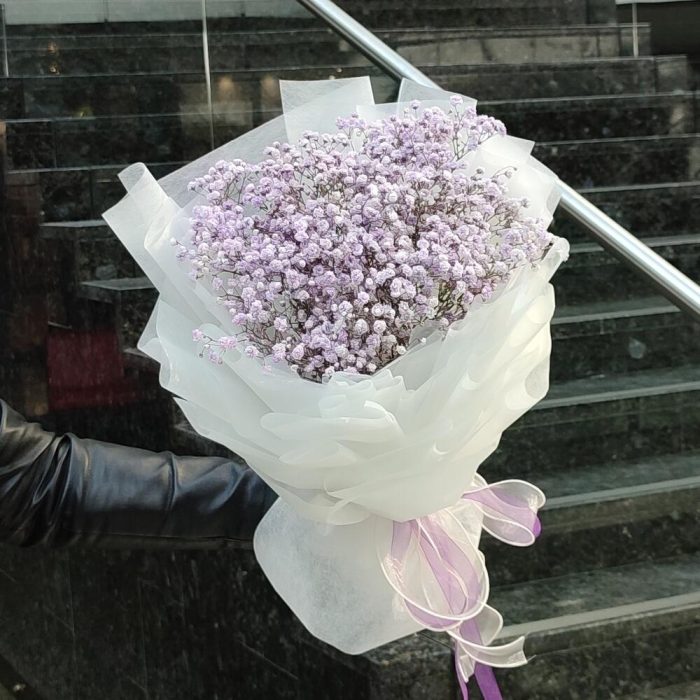 “Сиреневый туман” – композиция из гипсофилы в шляпной коробке